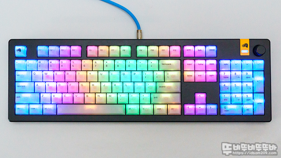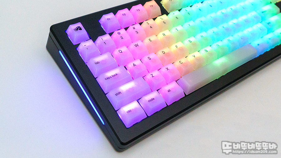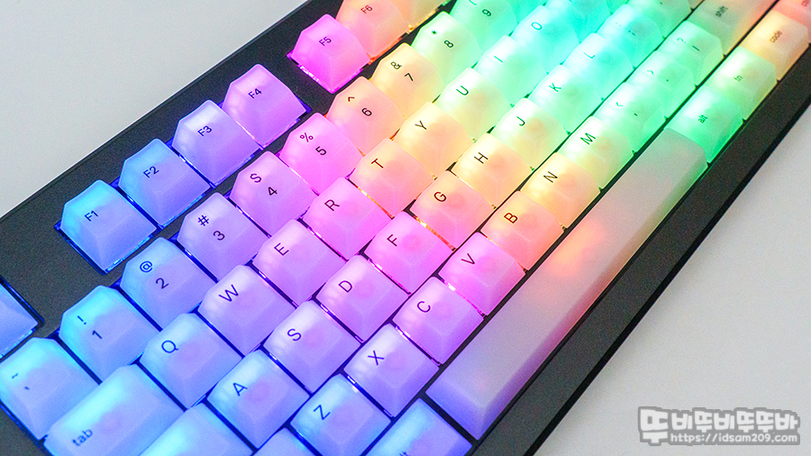 특히 체리 프로파일의 폴리크로마 V2 RGB 키캡을 장착해 보니, 기본으로 제공되는 OEM 프로파일 PBT 키캡과는 또 다른 손맛을 느낄 수 있었는데 개인적으로는 체리 프로파일 키캡이 더욱 손에 잘 맞는 느낌이었습니다.