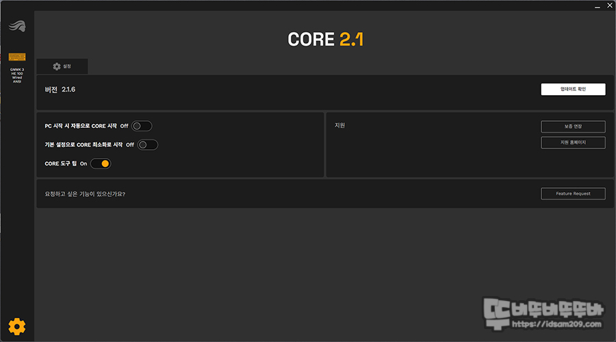 기존의 백라이트가 유지되는 상태에서 LED컬러는 변경하는 부분은 이전 코어 2.1과 변화가 없었습니다.