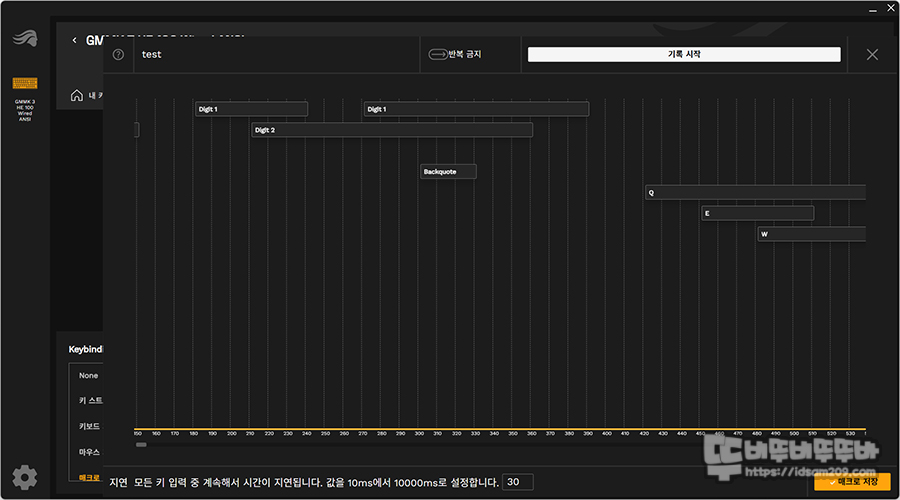 매크로 기능은 이전과 동일한 타임라인 입력 방식으로 시간에 따라 옆으로 이동하며 실시간 기록을 합니다.