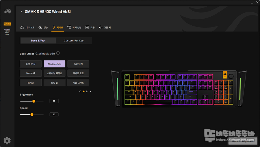 또한 새롭게 개선된 Glorious Core 프로그램을 통해 LED 효과, 래피드 트리거 설정, 키 바인딩 등 다양한 기능을 손쉽게 조절할 수 있는 편의성도 개선되어 만족스러운 만큼 빌드 퀄리티와 성능 모두를 중요하게 생각하시는 게이머 및 키보드 유저분들께 Glorious GMMK 3 HE 100%를 추천드리며 리뷰를 마칩니다.