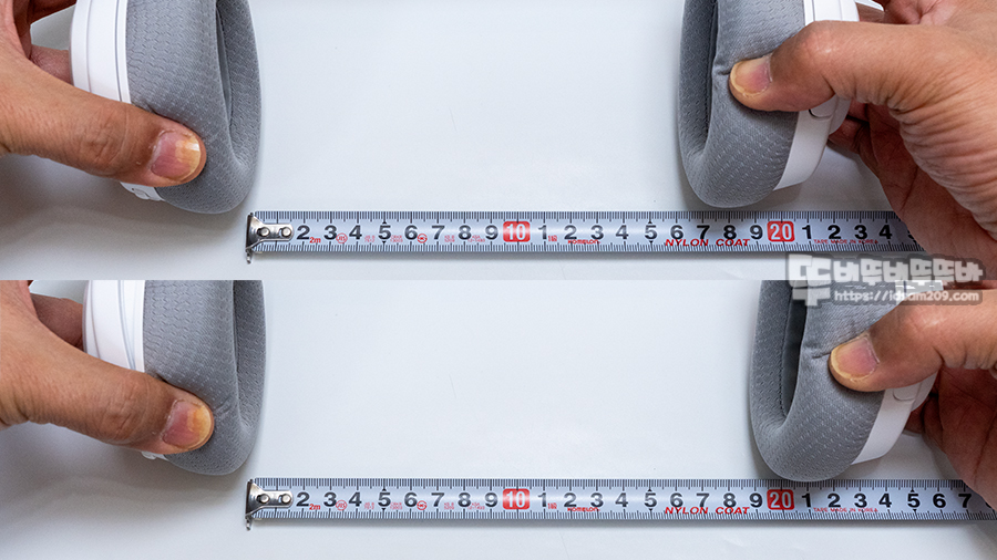 이어패드를 11자로 유지한 상태에서 높이 조절을 최소 그리고 최대로 하여 늘려보면 약 160 ~ 190mm로 늘어나는 것을 확인할 수 있는데요.
