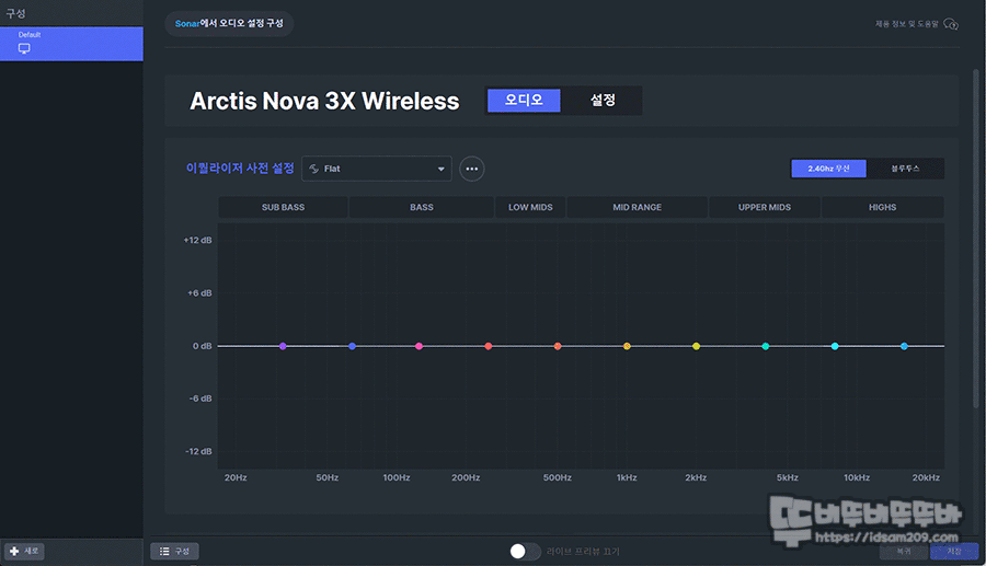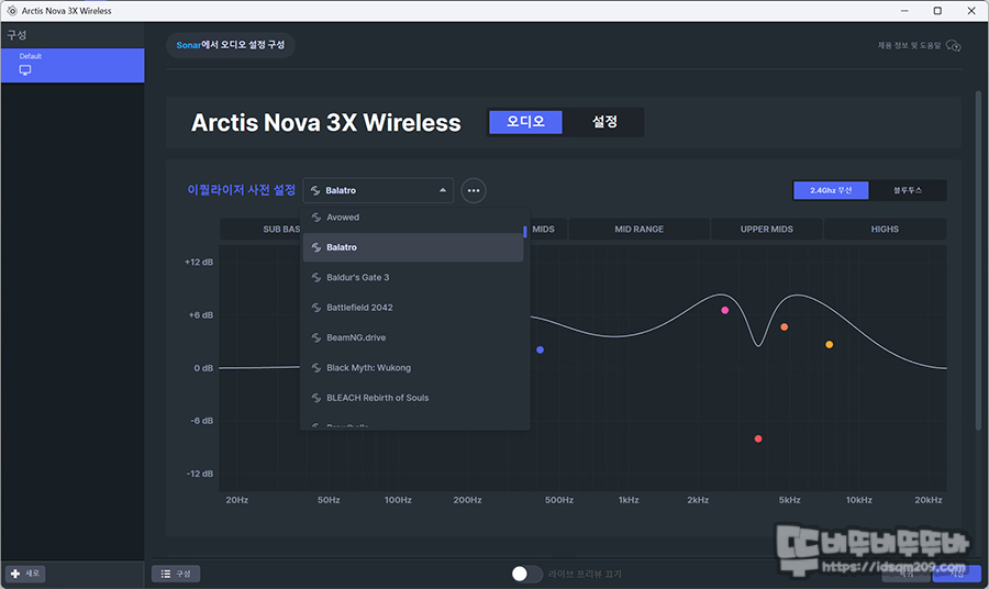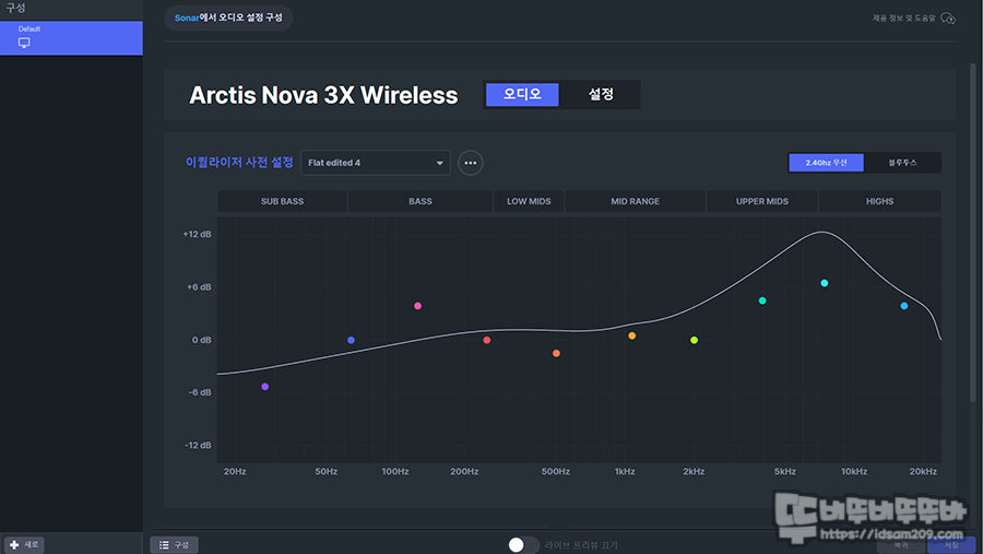 지금까지는 헤드셋을 사용할 때 EQ 조절 시 음색이 크게 변화하지 않아 EQ 설정을 거의 하지 않는 편인데 스틸시리즈 Arctis Nova 3X 화이트는 기본 프리셋 설정 후 약간의 튜닝으로도 다이나믹한 사운드 변화를 체감할 수 있어 생각보다 놀랬습니다.