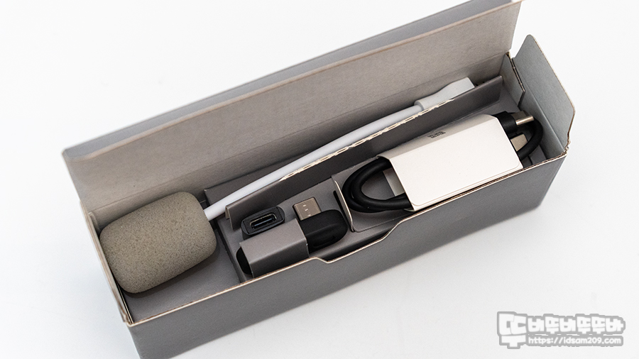 패키지 내부 포장은 친환경을 위해 종이만 사용된 그린 패키지를 사용하여 제품을 덮는 별도의 포장이 없으며 헤드셋 중안에 기둥처럼 보이는 작은 패키지에 붐 마이크와 USB-C 리시버, C to A 변환 젠더 그리고 충전 케이블 담겨 있으니 꼼꼼히 확인하시기 바랍니다.