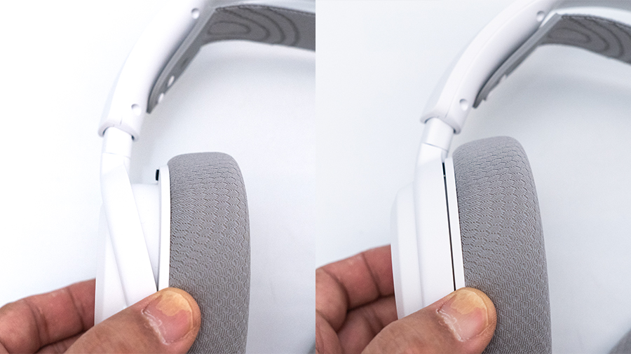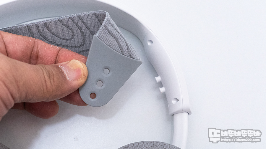 이어컵 하우징의 틸트를 지원하는 C 포트 부분은 플라스틱 소재끼리 닿았을 때 충격을 방지하기 위해 충격 흡수를 위한 스펀지를 사용하여 소음 없이 헤드셋을 사용할 수 있게 지원하고 있고요.