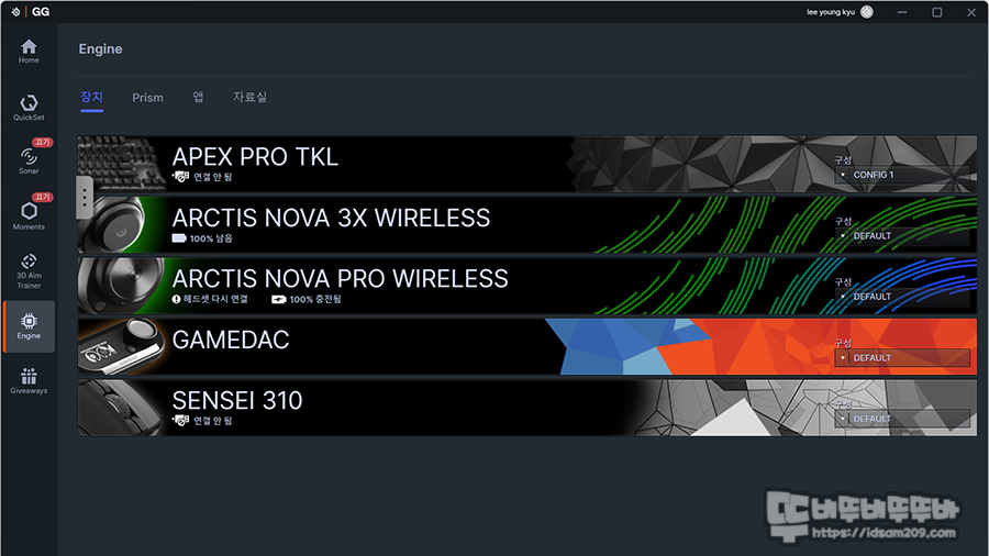 소프트웨어 기능을 확인하기 위해 SteelSeries GG를 실행해 보면 Arctis NOVA 3X Wireless로 인식된 것을 확인할 수 있는데요.