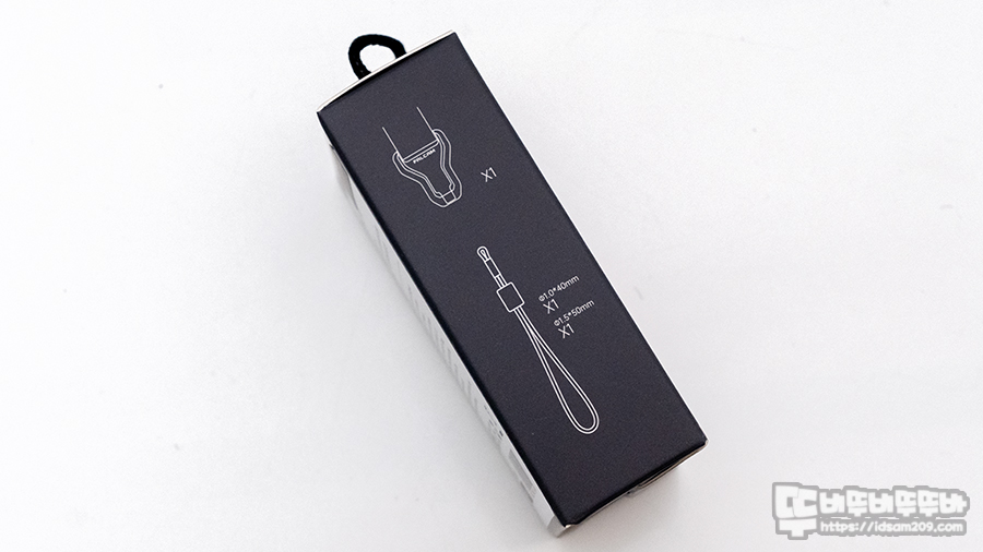 측면에 구성품 정보를 보면 뭐지? 하실 건데 제품은 손목 스트랩과 자석 스트랩 고리 2개(40mm, 50mm)로 구성되어 있습니다.