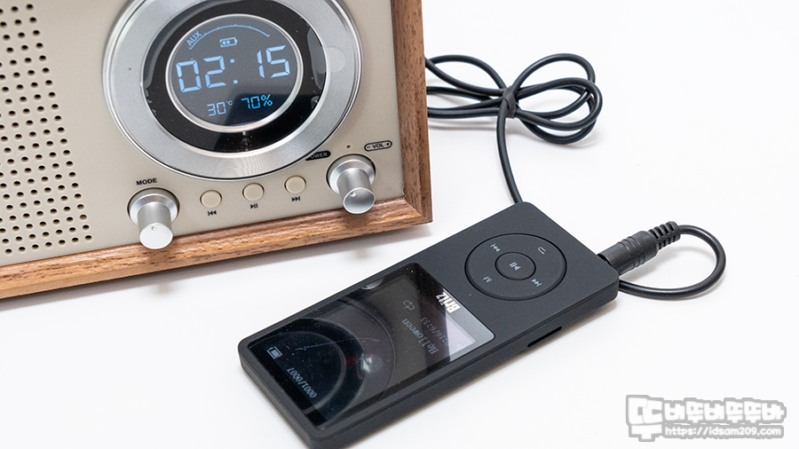 메모리와 AUX 케이블이 모두 연결될 상태에서 Mode 버튼을 눌러보면 디스플레이 전면에 선택된 입력 모드를 표시해 줘서 편리하게 사용할 수 있었습니다.