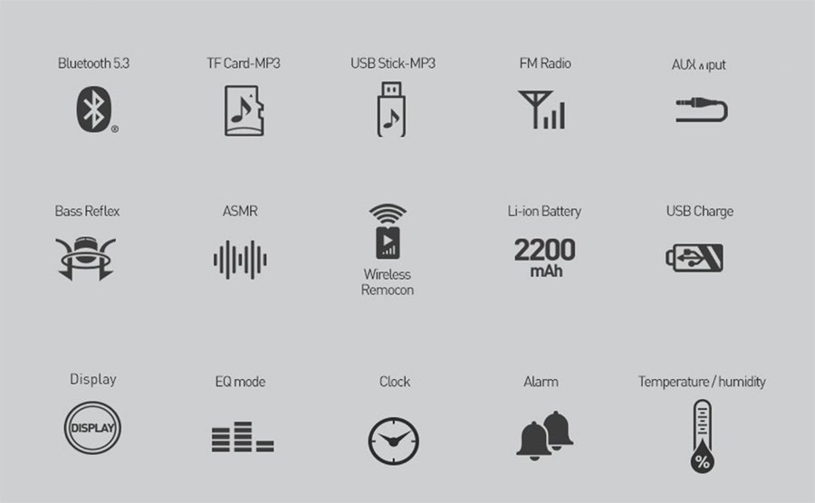 기능이 많으면 활용도가 좋은데 브리츠 BA-HMK31 Plus는 기본 블루투스 기능 외 시계/알람, FM 라디오, AUX 외부 사운드 입력, TF(MicroSD) 및 USB 메모리 MP3 플레이를 지원하는 올인원 제품입니다.