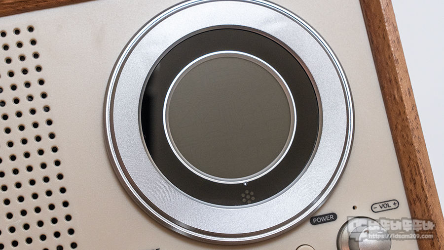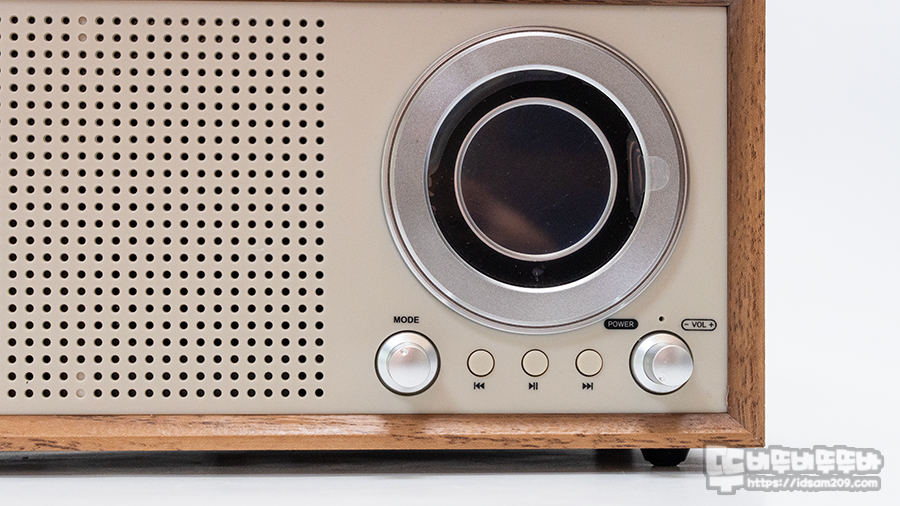 전면에 타공면과 동글동글한 원형 디스플레이와 노브 그리고 버튼 구조는 과거 아날로그 디자인을 현대적으로 잘 복원한 느낌을 줍니다.