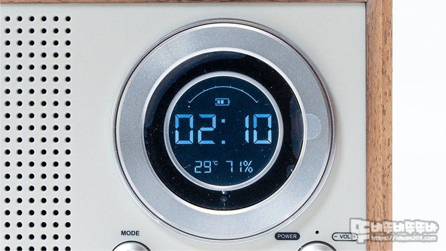 ▶|| 버튼 짧게 눌러 알람 설정으로 진입 시 시간 설정과 비슷하면 ▶▶| 버튼을 추가로 눌렀을 때 알람 볼륨과 알람 소리 소스(TF/USB/FM 라디오/기본 알람사운드) 등을 선택하여 사용이 가능하며 알림이 작동 시 알람 소리를 멈추고 일정 시간이 지나면 다시 알람이 작동하는 스누즈 기능도 지원합니다.