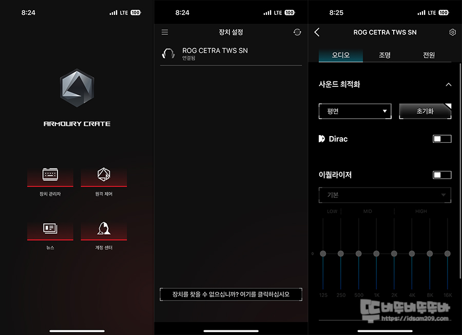 앱 사용하는 경우라면 Dirac 활성화는 필수라고 말씀드릴 수 있는데 사운드가 선명해지면서 풍성해지는 느낌이 있어 미세하지만 확실히 좋은 소리를 들려주고요.