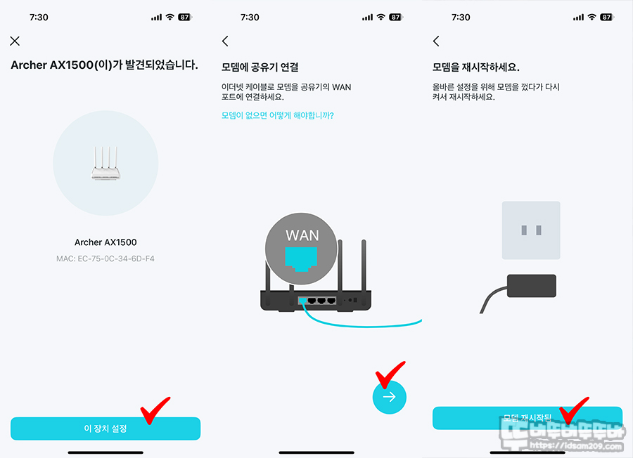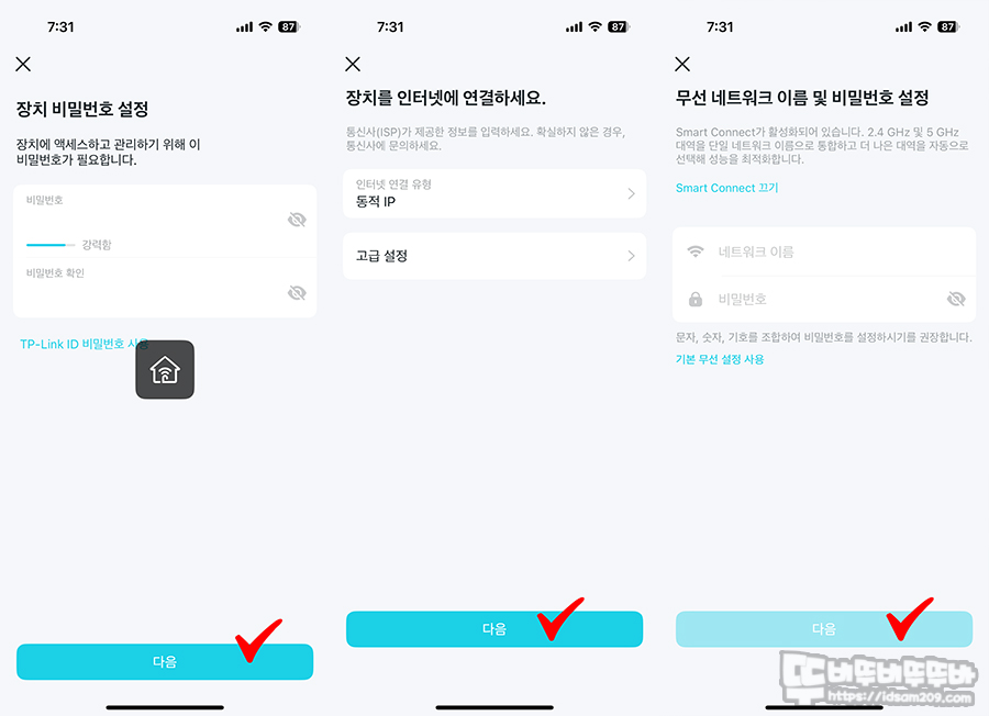 설정 작업 중 앱을 빠져나오는 일이 없이 앱 화면에서 지시하는 대로 진행하면 큰 어려움 없어 초보자도 간편하게 설정할 수 있습니다.
