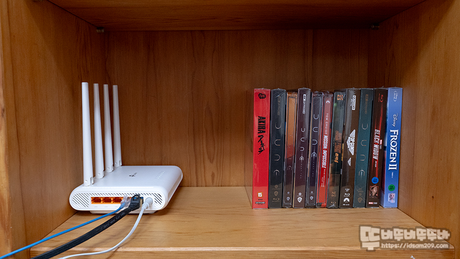 공유기를 책상 위에 올려놓고 사용할 수 있지만 필자의 경우 작은방에 설치 시 책장 한편에 설치하게 되는데 디자인이 좋아서 그런지 가로 또는 세로로 거치하여 사용해도 잘 어울리는 느낌입니다.