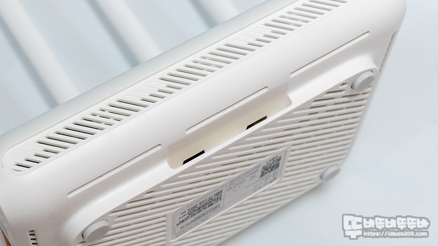 바닥면에는 미끄럼 방지 패드와 Wi-Fi SSID와 비번 초기값이 인쇄된 라벨 정보가 있어 공유기 초기 세팅에 도움이 될 수 있지만 Tether 앱이나 관리자 모드 접속 시 기본적으로 보안을 목적으로 새로 세팅하게 되니 참고하세요.