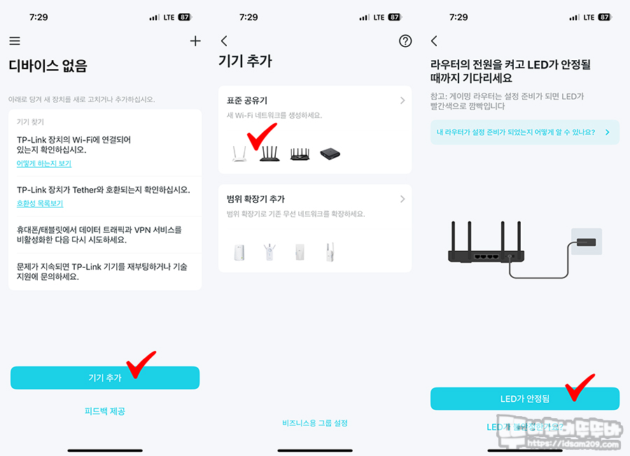 티피링크의 강점은 Tether 앱을 이용한 간편한 설정이라 할 수 있는데 앱에서 설명하는 내용을 천천히 읽으면서 진행하시면 특별히 어려운 부분이 없습니다.