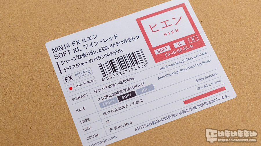 이번에 리뷰할 제품은 아티산이라는 이름만으로 리뷰가 끝나는 Artisan 아티산 히엔 마우스패드 HIEN 슬라이딩 제동 게이밍패드 와인레드(XL)입니다.