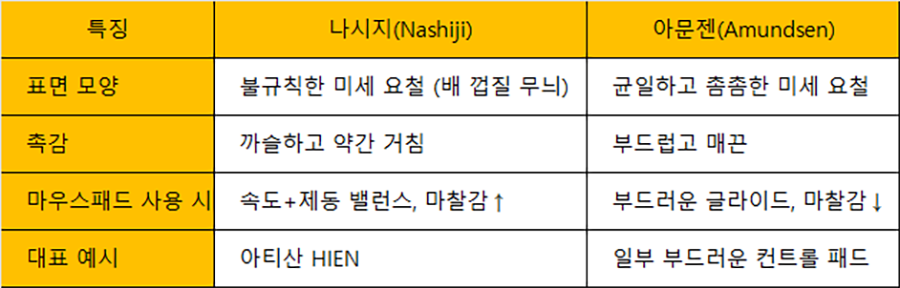 특히 히엔 모델은 표면 질감, 정지력, 슬라이딩, 이동 안정감, 브레이킹 등 주요 지표가 균형 잡혀 있어 다양한 게임 환경에서 안정적인 제품이라 할 수 있습니다.