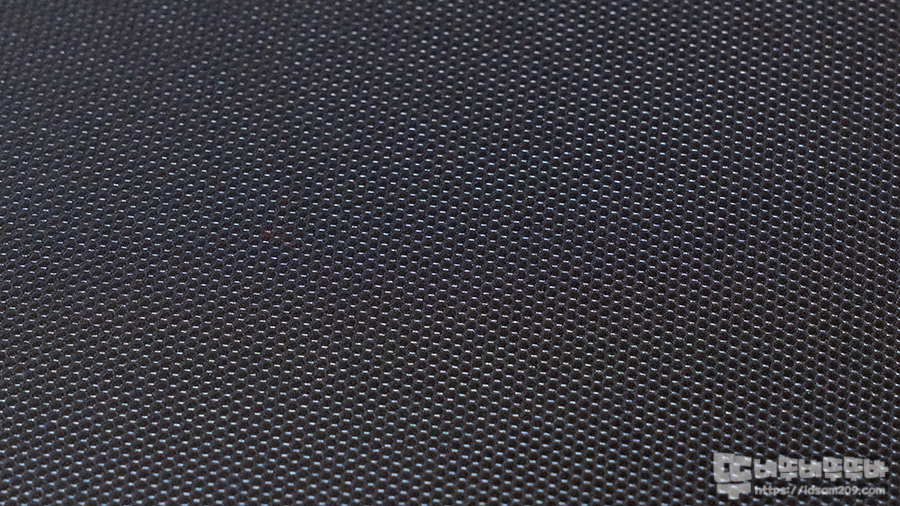모직을 확대하여 확인해 보면 배껍질이라고 하는 nashiji weaving(나시지 짜임)이 적용되었으며 하이브리드 패드 표면에서 자주 볼 수 있는 아문젠 짜임과 비슷해보지만 모직의 짜임이 불규칙하고 원사가 거친 느낌이 있습니다.