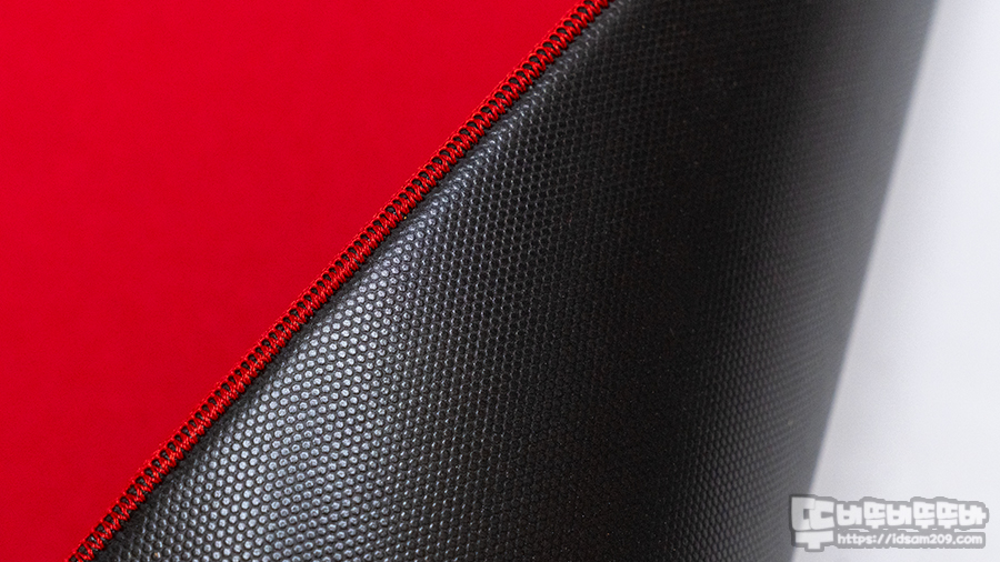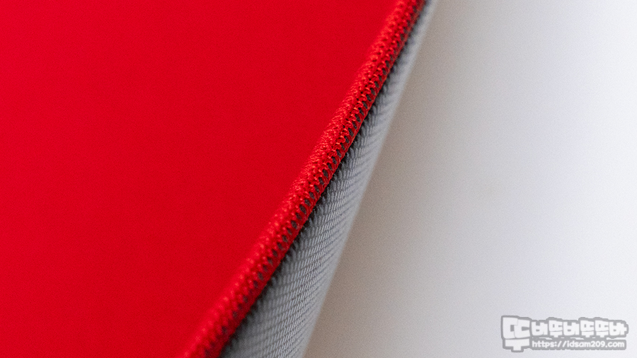 엣지 부분의 오버로크는 꽤 촘촘하며 두께감이 없어 모서리 부분에 손을 올려놓고 사용해도 불편한이 없었습니다.