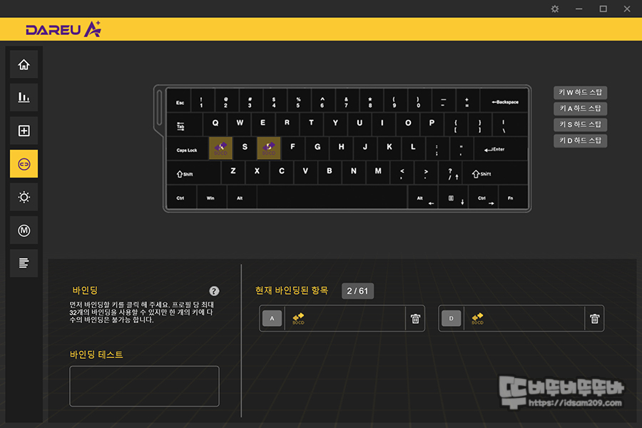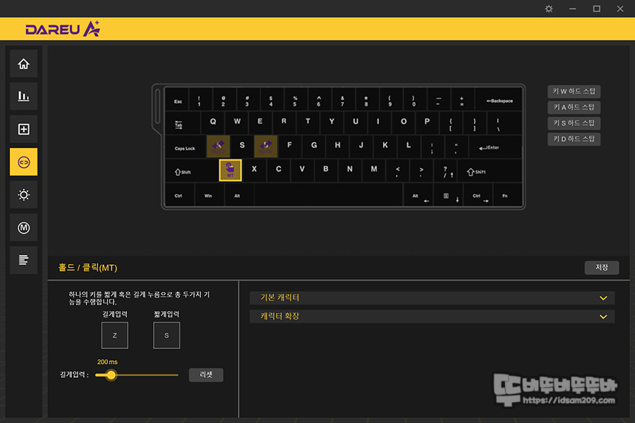 다얼유는 자체 D.H.A (Dynamic Hybrid Algorithm)가 적용되어 조명, 입력 감도 등 세부 조정이 가능한데요.
