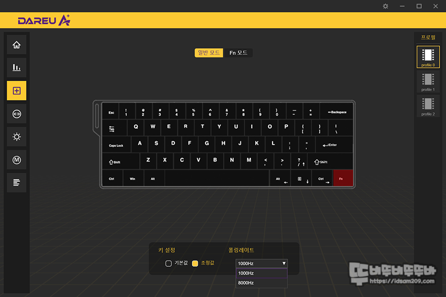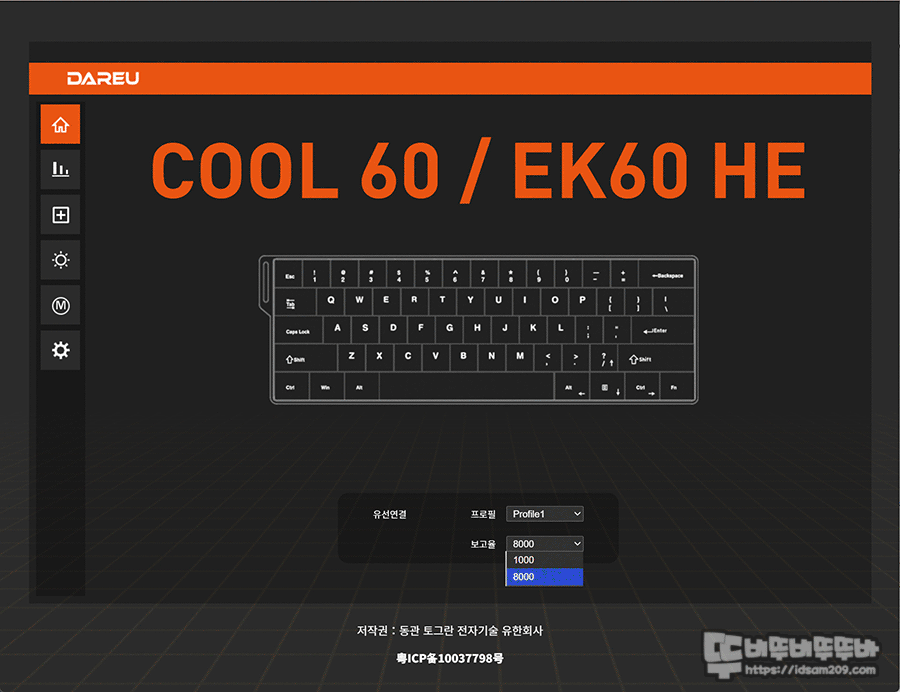 1. 키 설정 메뉴에 1K, 8K 폴링 레이트 선택 - 웹 버전에서는 가장 첫 화면에 있었는데 위치가 살짝 다르게 구성되어 있습니다.
