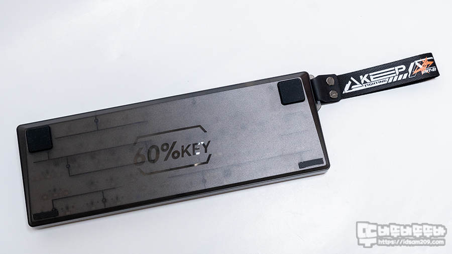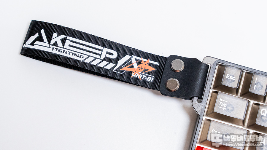 스트랩은 별도 포장으로 담겨있는데 프린팅된 스트랩은 나일론 스트랩, 인조가죽고리, 고리와 스트랩 고정 나사로 구성되어 키보드 측면에 고리에 부착하여 사용할 수 있습니다.