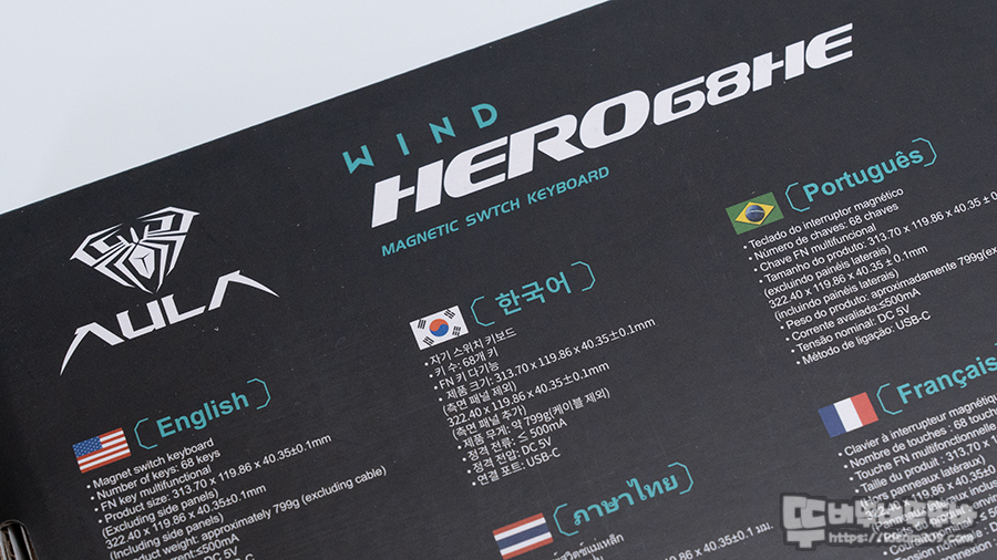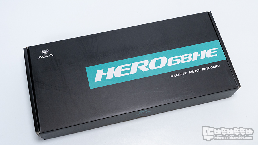 AULA Hero68HE 패키지는 심플한 블랙 패키지에 Hero68HE 모델명 마그네틱 스위치 키보드라는 내용으로 제품의 정체성을 잘 표현해 주고 있습니다.
