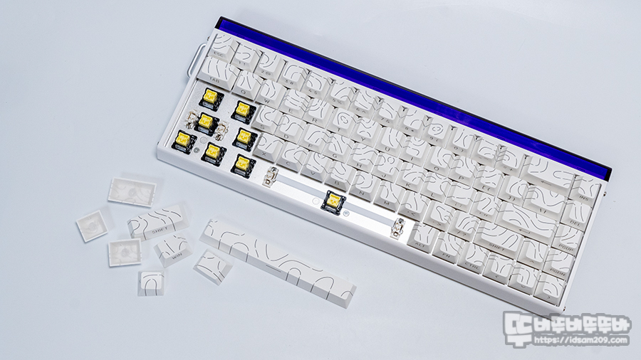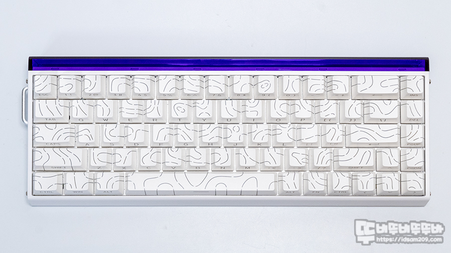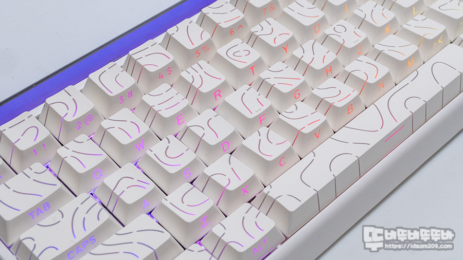 PBT 재질의 체리 프로파일 키캡에는 등고선 라인과 측각 각인이 적용되어 RGB LED가 입체적으로 표현되어 독특한 비쥬얼을 표현합니다.