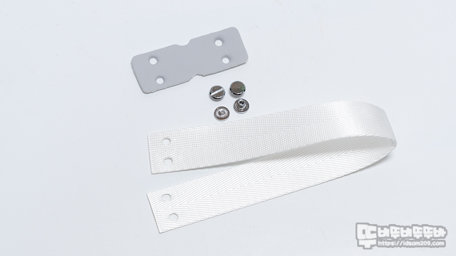 스트랩은 인조가죽을 스트랩 고리에 감싼 뒤, 나일론 스트랩을 겹친 후 스냅 스크류 리벳으로 고정하는 방식으로 조립하시면 휴대할 때 안정적으로 들고 다닐 수 있습니다.