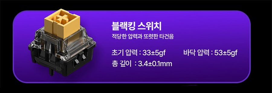 위에 스위치 설명에서 언급했듯이 33g의 저압의 리니어 방식이지만 깔끔하면서 구분감이 있는 소리를 들려주며 그동안 경험했던 조용한 자석축과는 조금 다른 느낌을 줍니다.