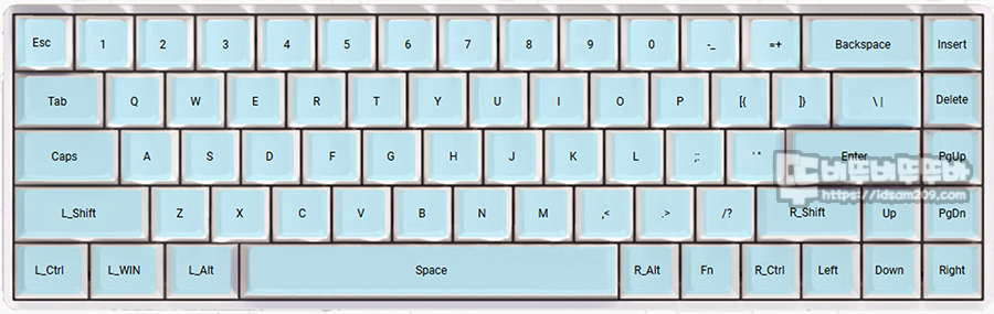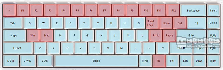 또한 68키 기본 레이어는 F 펑션열과 표준 배열의 모디열 중 일부 키가 없는 상태로 Fn 조합 레이어의 기능을 이용하여 모자란 키보드 자판 기능을 보완할 수 있습니다.