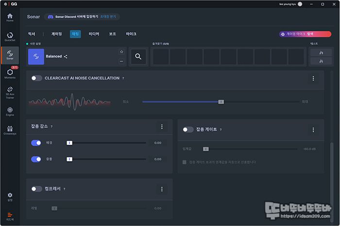 게이밍 이외 채팅, 미디어, 보조, 마이크 메뉴에서도 각 항목에 해당하는 프리셋을 지원하니 참고하세요.