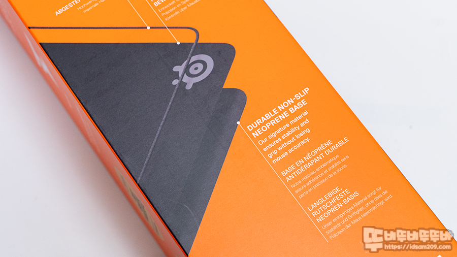 스틸시리즈의 QcK Performance는 논슬립 네오프렌 베이스가 적용되어 그런지 촘촘하지 않고 크게 원형으로 말려있어 큰 사이즈의 사각형 패키지에 담겨 있는데요.