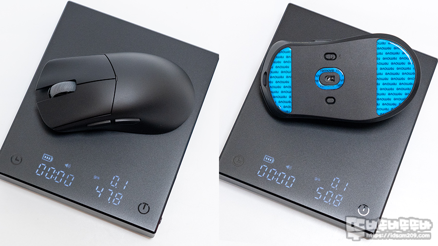 피트가 없는 상태의 무게는 약 4.78g, 미트를 모두 부착 시 약 50.8g 무게를 보여주네요.