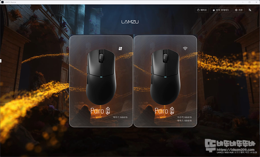 웹 브라우저와 설치용 소프트웨어 모두 동일한 화면 및 기능을 사용할 수 있는 람주 파로 오로라는 마우스의 연결 상태에 따라 유선과 무선 표시를 아이콘으로 보여주어 연결 상태를 직관적으로 알 수 있게 도와줍니다.