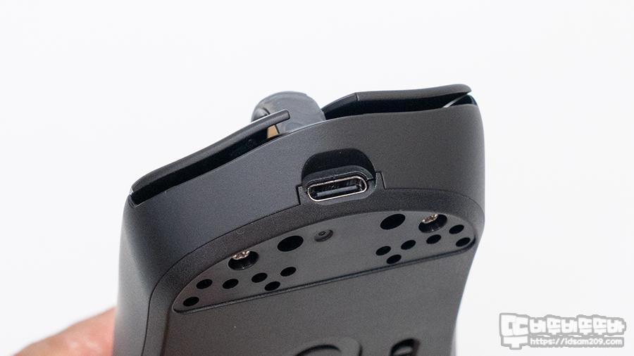 마우스 전면에는 충전과 유선 연결이 가능한 USB-C 단자가 위치하고 있습니다.