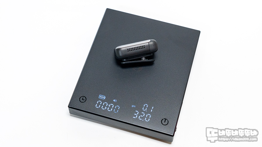 자석 클립을 부착한 상태로 1g 단위로 측정 가능한 디지털 저울로 측정 시약 32g 무게를 확인할 수 있습니다.