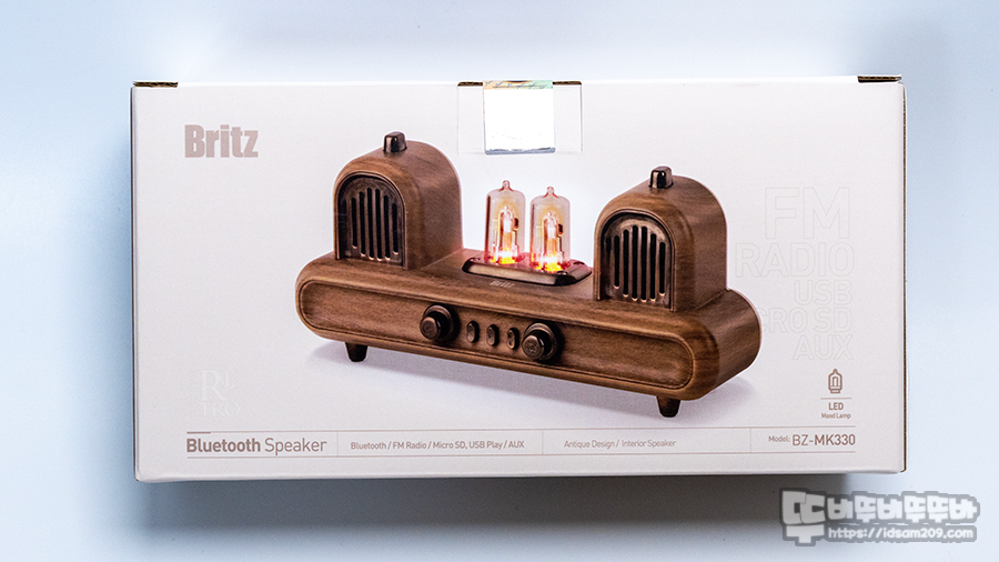 브리츠 BZ-MK330의 패키지는 제품의 이미지와 모델명 그리고 엔틱 디자인, LED 무드램프 표현이 눈에 뜹니다.
