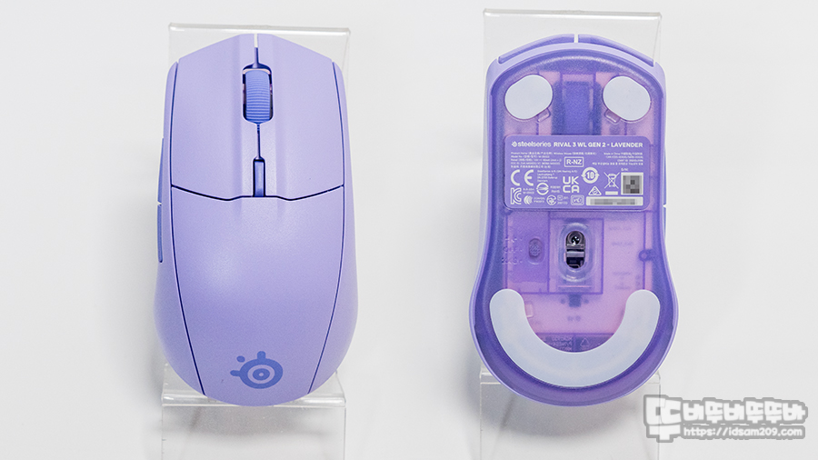 스틸시리즈 Rival 3 Gen2는 대칭형 디자인으로 하판과 휠 가이드를 반투명 소재와 일반적인 ABS 소재를 투톤 느낌으로 사용하여 스타일리시한 느낌을 주을 주며 버튼부 보다 로고가 있는 뒤쪽이 볼록한 형태로 안정적인 그립감에 특화되었습니다.
