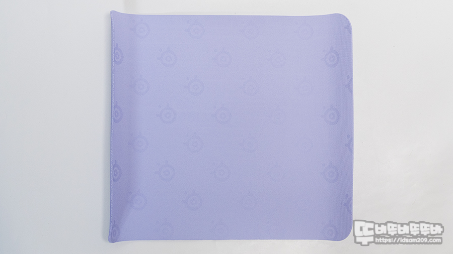 가로 방향으로 짜인 모직은 촘촘하게 제작되어 마우스가 X/Y 방향으로 이동과 회전 시 부드럽게 시작하여 정확한 컨트롤을 제공하며 왼쪽 하단의 스틸 로고는 인쇄가 아닌 라텍스 소재를 사용하여 살짝 두툼하게 표현되어 있지만 사이드 위치하고 있어 마우스 무빙에는 영향을 주지 않습니다.
