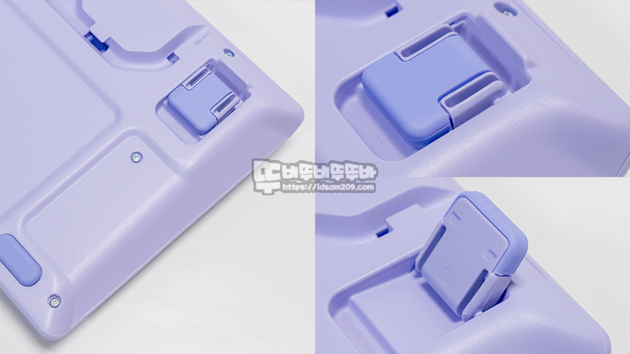 바닥면에는 두툼한 미끄럼 방지 패드와 3 Way로 사용이 가능한 케이블 고정 가이드 그리고 침수 시 배수가 가능한 드레인 홀이 마련되어 있습니다.