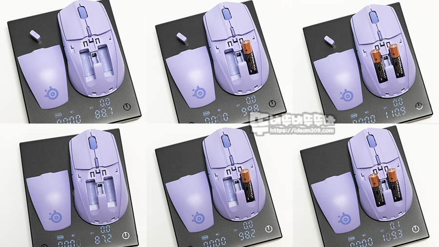 다양한 방식으로 무게를 측정해 보니 87.2g (건전지 x / 리시버 x), 98.2 (건전지 1개 / 리시버 x), 109.3 (건전지 2개 / 리시버 x)