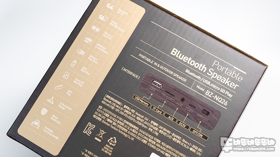 78mm 듀얼 드라이브가 탑재된 BZ-NQ26 블루투스 스피커는 4000mAh 배터리가 내장되어 50% 볼륨으로 최대 20시간 재생이 가능한 16W 출력에 TF-Card와 USB, AUX 등 다양한 입력 지원이 가능하여 활용도가 좋은 제품인데요.
