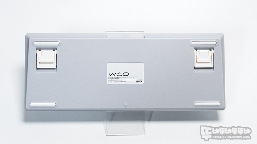 약 7도의 자체 경사로 디자인된 Wraith W60 키보드 모습.