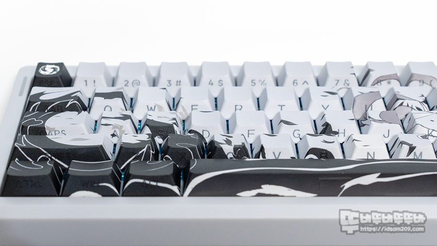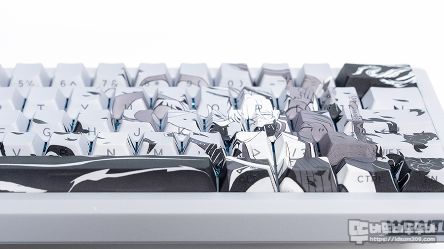 8KHz에 32kHz 스캔율을 지원하기에 꽤 퀄리티 있는 키보드 성능을 제공하는데 단순한 키캡이 사용된 제품보다 5면 염료승화 인쇄된 캐릭터 이미지가 은근히 화려한 느낌을 줍니다.