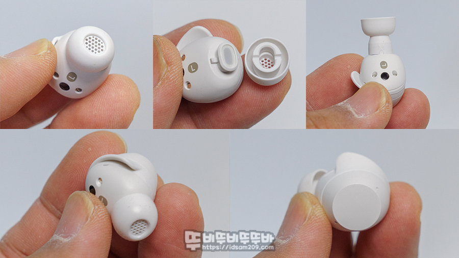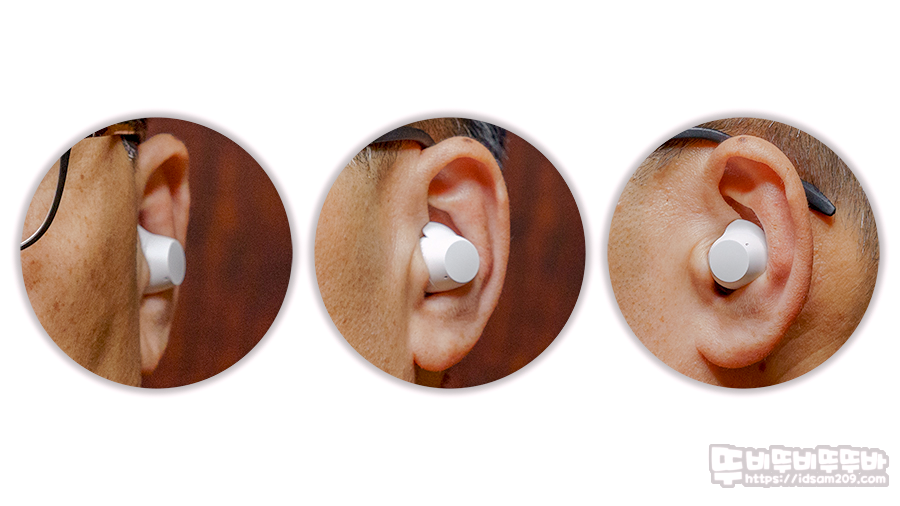 이어버드 착용은 생각보다 좋았는데 인체공학적 디자인으로 귀에 안정적으로 '쏙' 들어가는 형태로 가벼운 무게 덕분에 장시간 착용에도 귀에 피로감이 덜하며 이어버드를 귀에서 빼낼 때도 그립감이 좋아서 한 번에 '쏙' 빼고, '쏙' 넣는 게 가능했습니다.