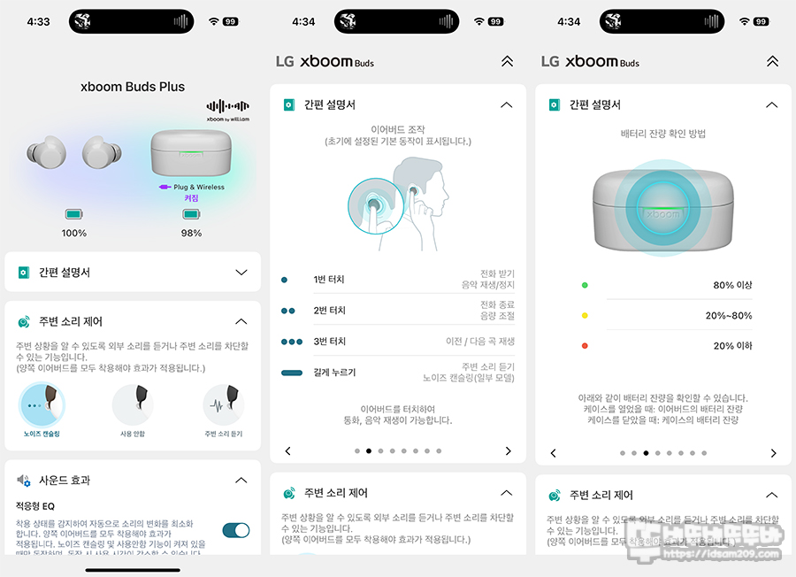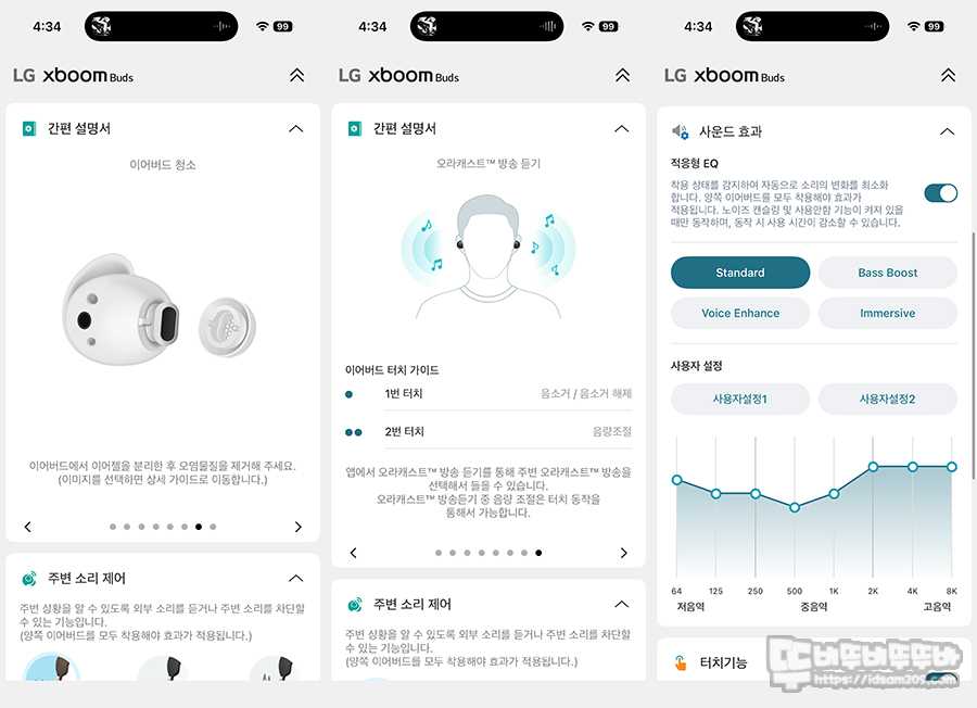LG xboom Buds 앱으로 버즈 플러스의 EQ 설정, 노이즈 캔슬링 최적화 등 기본 기능을 보완할 수 있는데요.