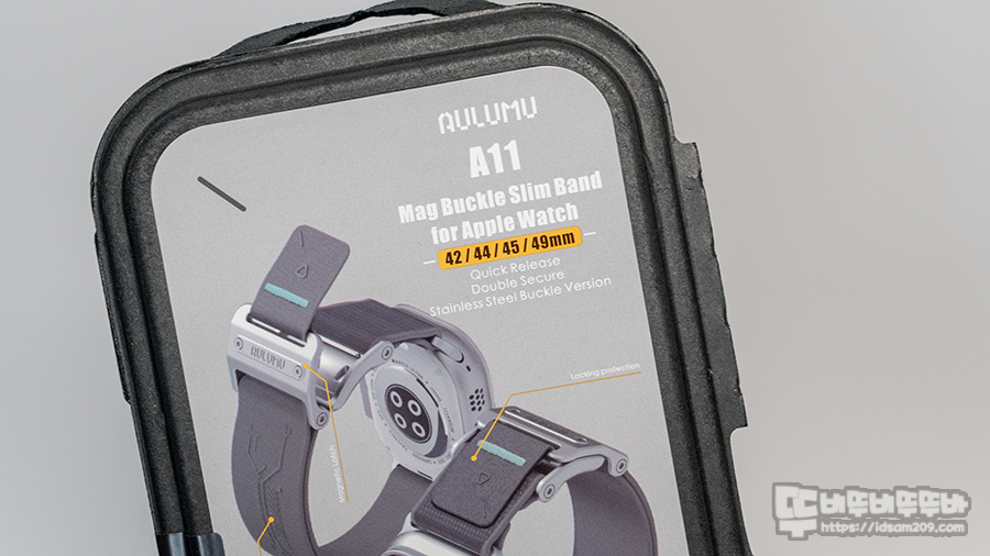리뷰 모델인 올루무(AULUMU) A11 Mag 버클 슬림 애플워치 밴드는 42 / 44 / 45 / 49mm에 최적화되어 있음을 강조하고 있으며, 애플 워치 10의 46mm 모델 또한 지원합니다.