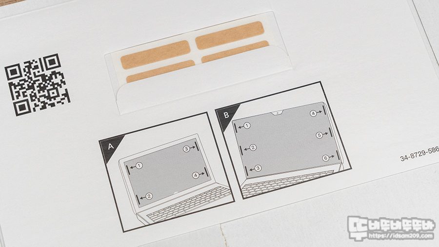 부착 방법은 LCD 표면에 직접 부착하는 A형과 프레임(베젤)에 끼우는 B형으로 나뉘어 있어, 사용자의 노트북 환경에 맞는 형태로 선택하여 부착하면 됩니다.