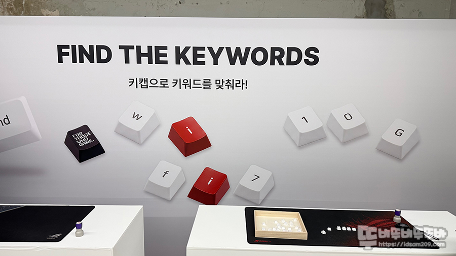 다시 옆으로 넘어오니 네 번째 미션으로 키캡을 이용하여 WiFi7 ROG 조합을 맞추는 게임이었는데 맨날 집에서 키캡 청소하면서 키배열을 맞추지만 막상 하려니 더듬게 되네요.